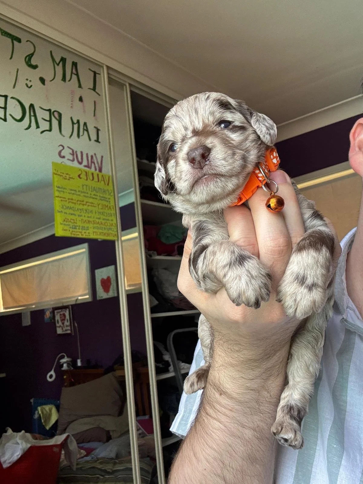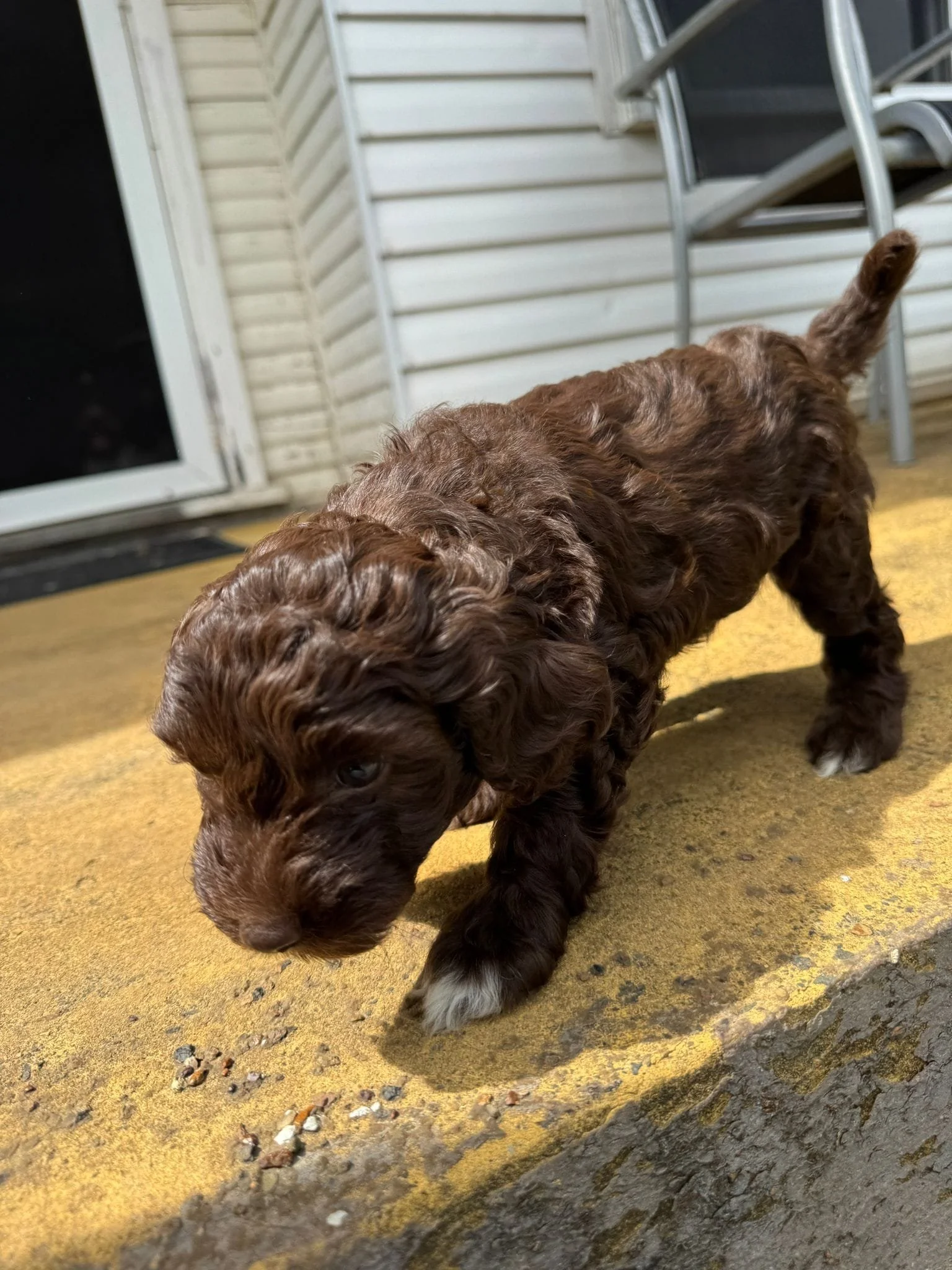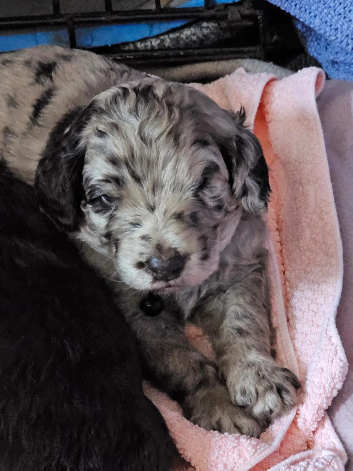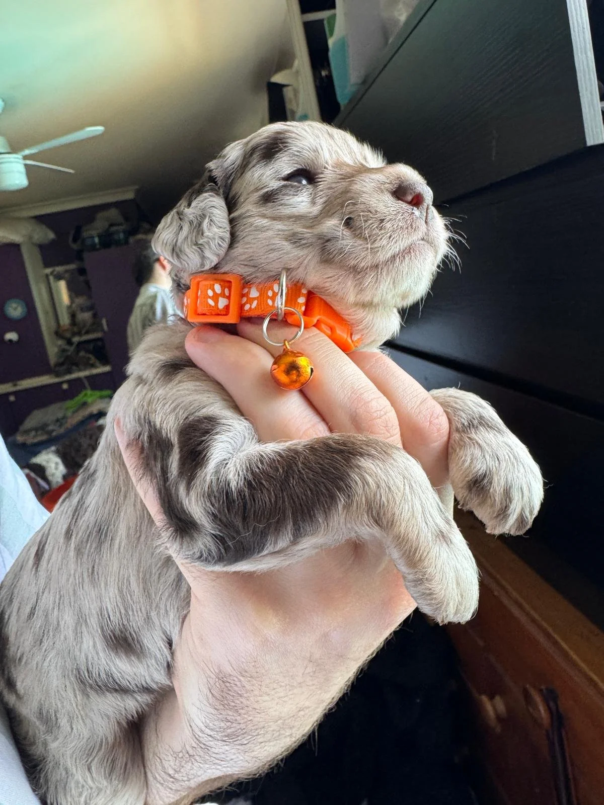 Daisy gave birth to 6 healthy robust pups. 3 chocolate with brown highlights. 3 Merle dappling. 2 boys 3 girls